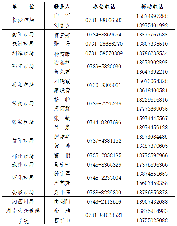 (1)市州现场确认地点:市州现场确认地点设在各市州文化旅游广电(体育)局,考生可根据属地就近选择,现场确认时间为9月2日-9月6日,各单位负责人及联系方式如下: