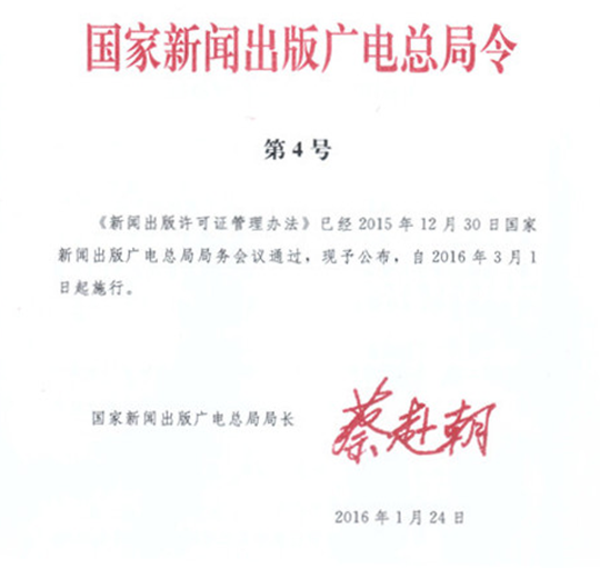 国家新闻出版广电总局令第4号 新闻出版许可证管理办法