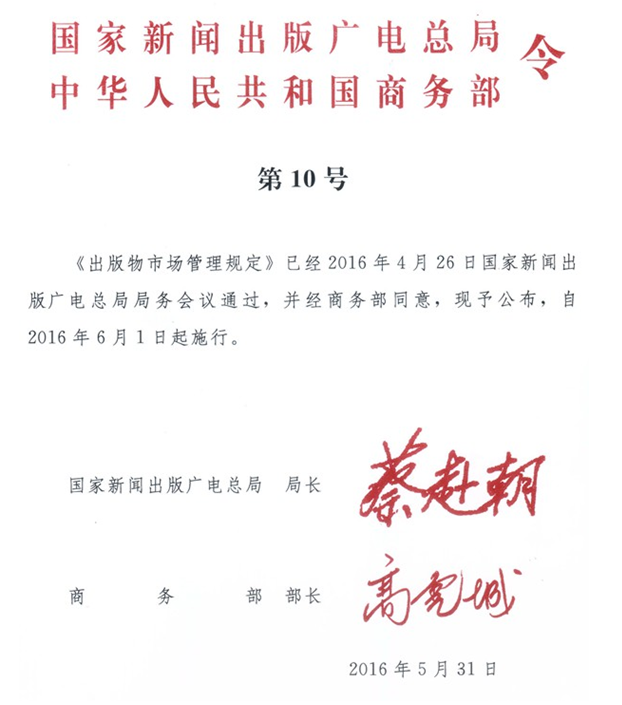 国家新闻出版广电总局中华人民共和国商务部令(第10号)出版物市场管理规定